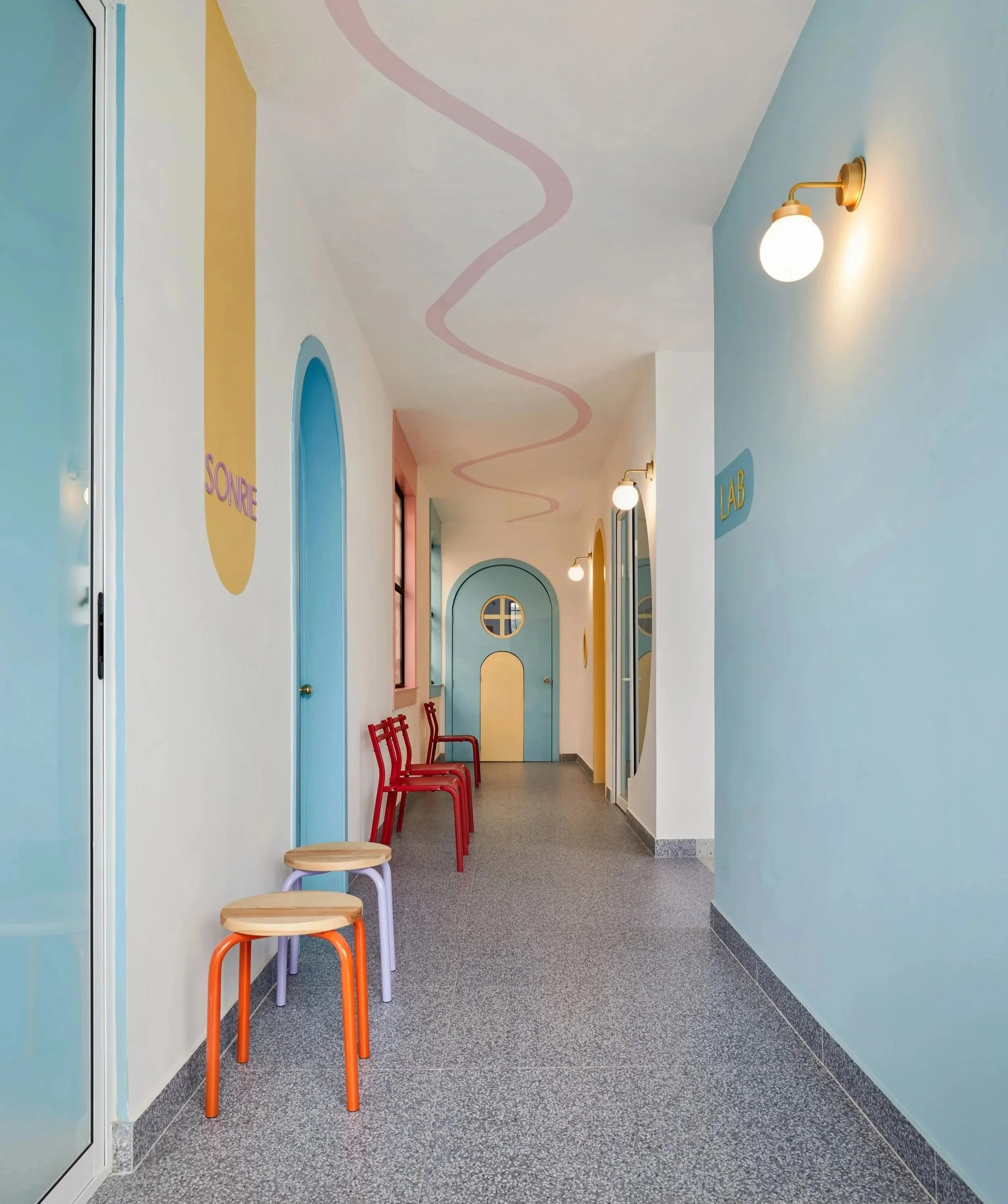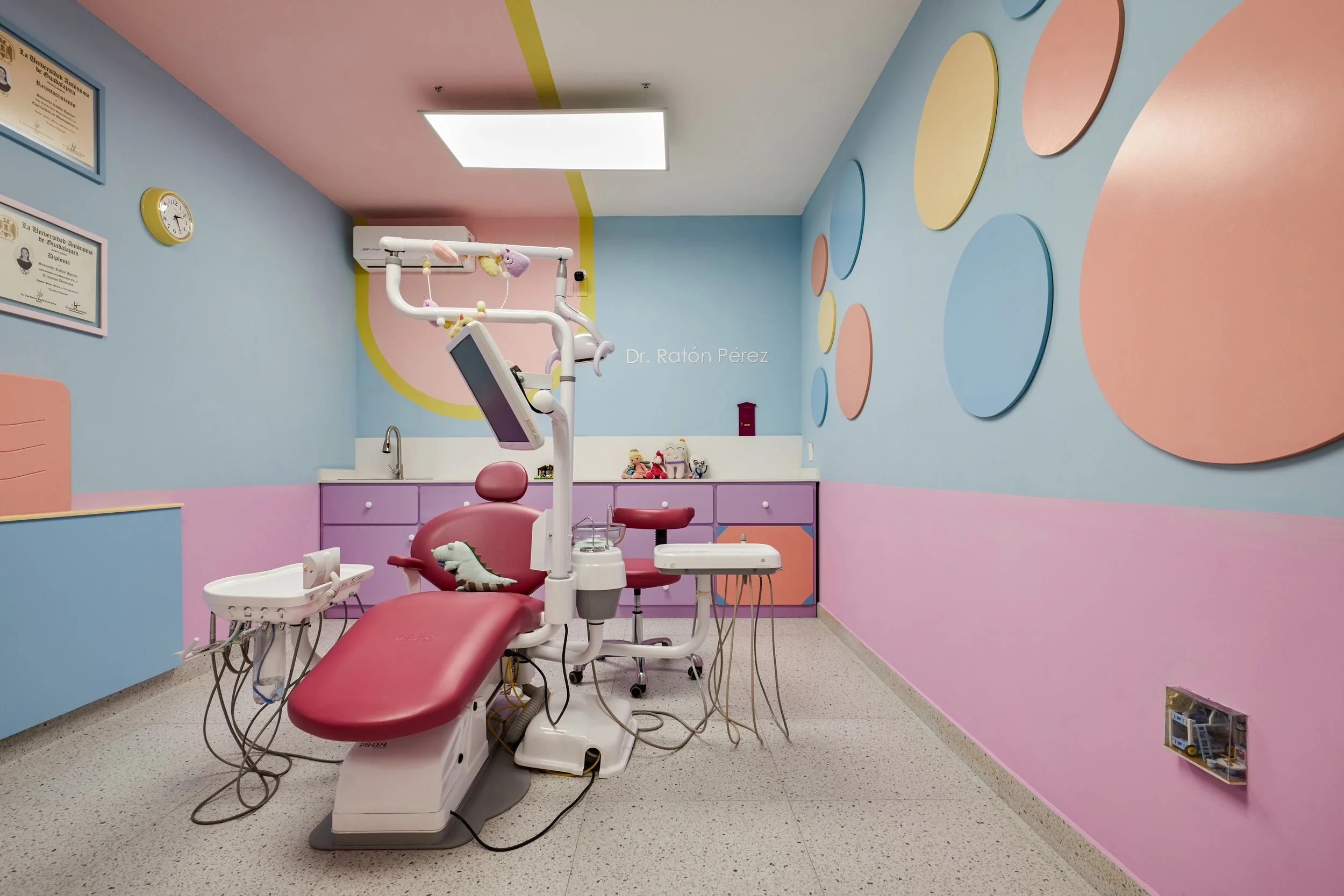This pediatric dental clinic was imagined as an immersive journey into the world of El Ratón Pérez; where dentistry meets storytelling, and fear gives way to wonder.//Esta clínica dental infantil nace como un viaje inmersivo al mundo del Ratón Pérez, donde la odontología se convierte en una experiencia narrativa y la imaginación reemplaza al miedo.